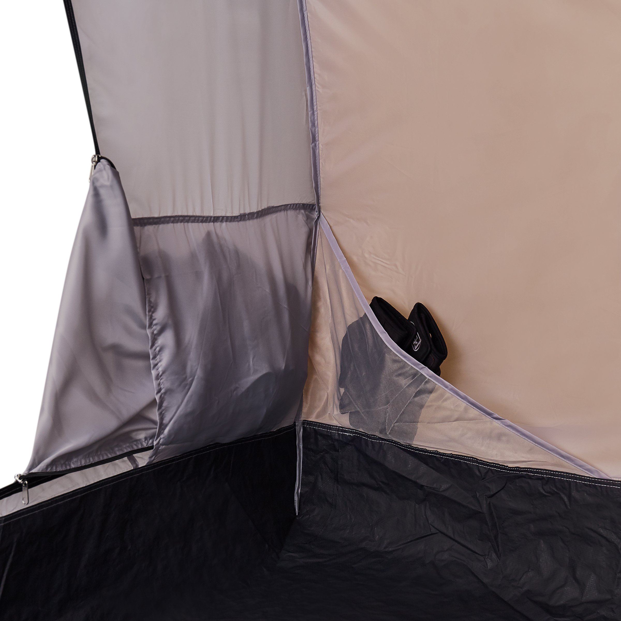 - Velké předsíň s dvěma vchody, které lze rozložit jako stříšku s tyčemi, vytváří chráněný rekreační prostor.