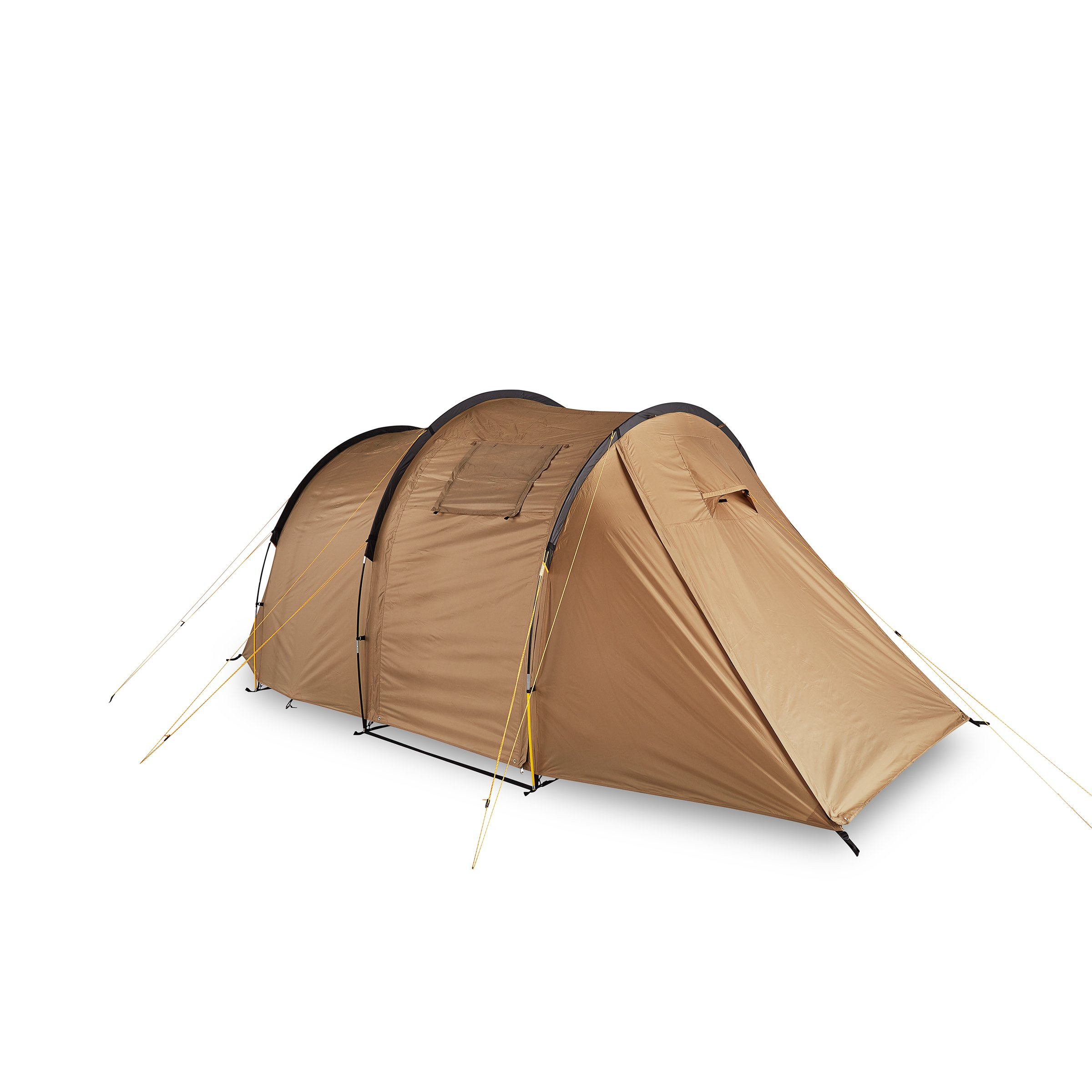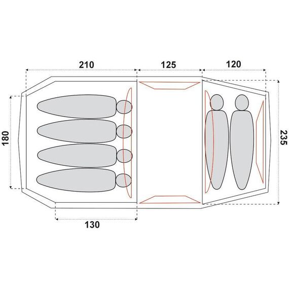 Tunelový stan s vnějším rámem z sklolaminátu 11 mm zajišťuje stabilitu. Tropiko z polyesteru PU s voděodolností 3000 mm H2O chrání před deštěm, všechny švy jsou laminované. Ložnice z polyesteru a moskytiéry u vchodů, podlaha z polyetylenu. Ideální na kempování, rodinné bivaky nebo skautské akce v mírných podmínkách.