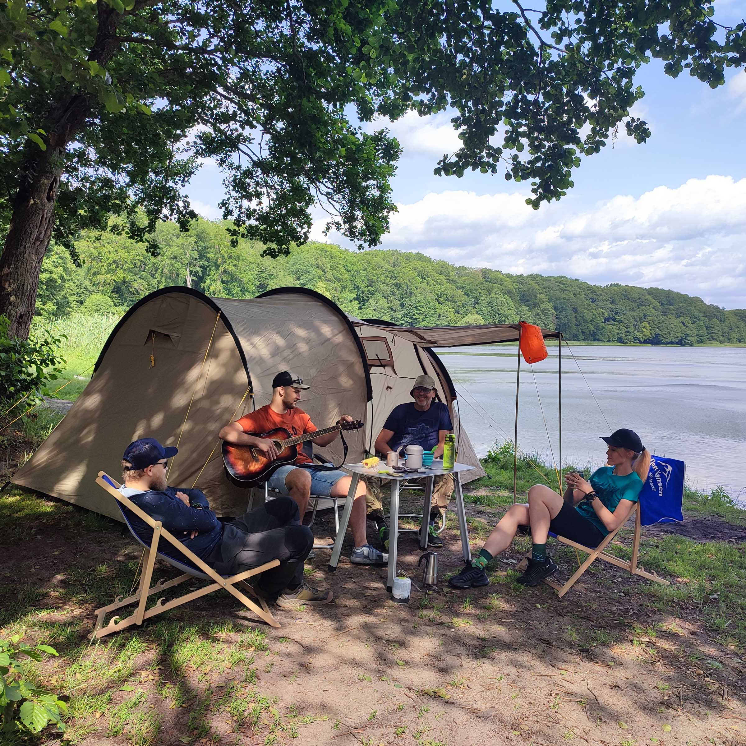 Rozkládejte stan na rovném povrchu, používejte všechny ocelové kolíky a odtahové šňůry, abyste maximalizovali stabilitu ve větrném počasí. Kompresní obal usnadňuje transport.