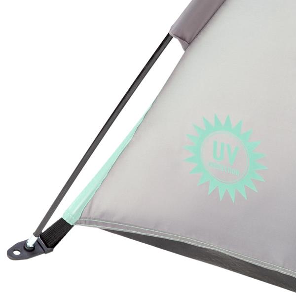 - Díky přiloženým kolíkům se nepohybuje ani nehrozí jeho odnesení větrem, což zajišťuje stabilitu na pláži.