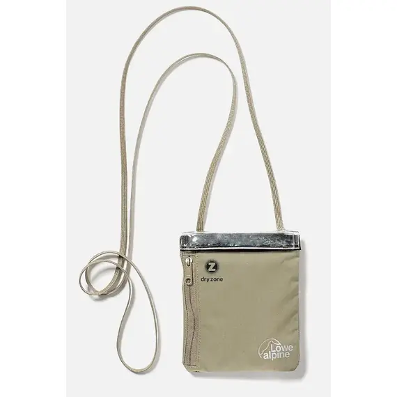 Voděodolná peněženka Dryzone Passport Wallet značky Lowe Alpine, vyrobená z měkkého materiálu. Pojme všechny karty, peníze a také pas. Má pohodlný pásek, díky kterému ji můžeš nosit pod oblečením na krku.