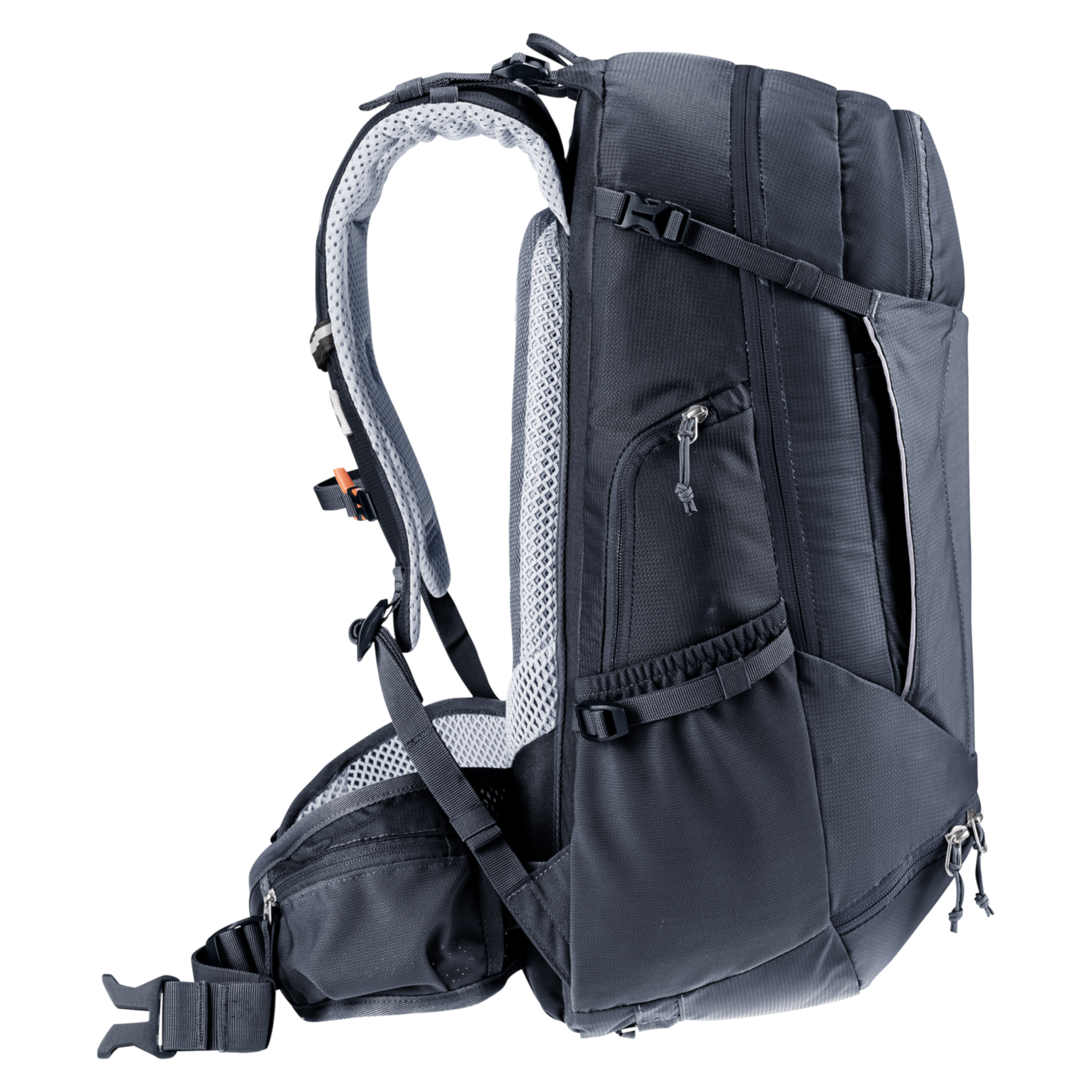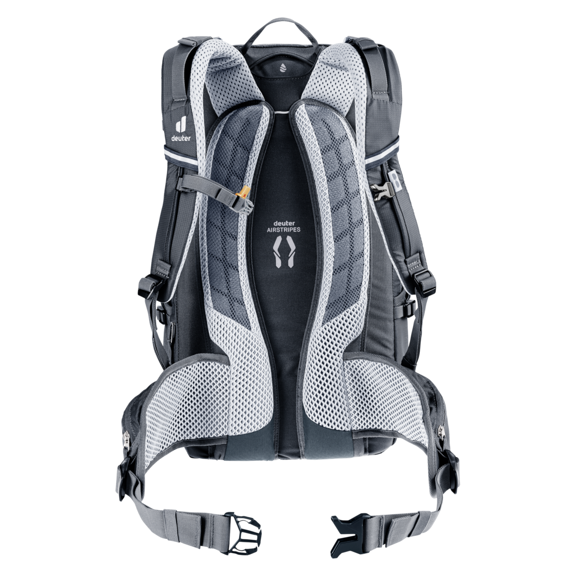 Systém nošení Deuter Airstripes System Bike zajišťuje ventilaci při minimálním kontaktu s zády. Systém se skládá z ramenních popruhů z trojrozměrné síťoviny anatomicky tvarovaných, prodyšných křídel bederního pásu z větratelné síťoviny, dvou pásů z měkké pěny pokryté síťovinou a flexibilních hliníkových výztuh uvnitř pěny, které lze flexibilně přizpůsobit.