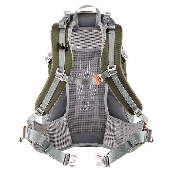 Prodyšný ventilační panel ; unikátní ventilační systém odděluje hlavní komoru od zad, zajišťující cirkulaci vzduchu a komfort i v největších vedrech. Navíc veškerá hmotnost batohu spočívá na profilovaném rámu, který odlehčuje páteři, zvyšující pohodlí během dlouhých horských výletů. Panel lze také snadno demontovat, což je užitečná možnost, když chceme batoh vyčistit.