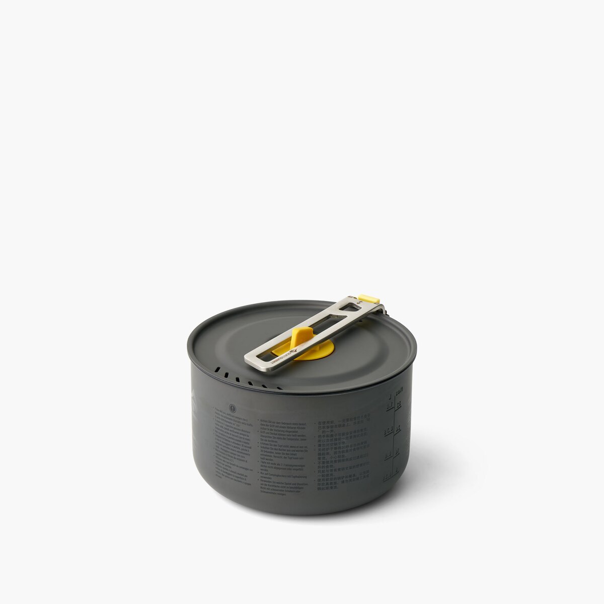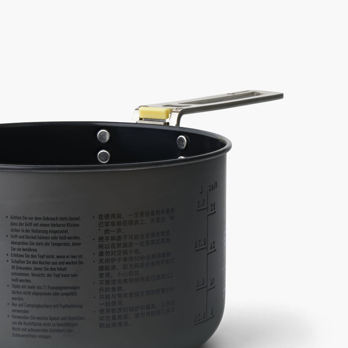 Hrnec má skládací, izolované rukojeti, které usnadňují manipulaci s horkým nádobím a zabírají málo místa po složení - užitečné řešení v těsných podmínkách kempu. Praktické víko s funkcí cedění umožňuje rychle odlít přebytečnou vodu bez použití dalších nástrojů, a ergonomický tvar usnadňuje skladování a balení.