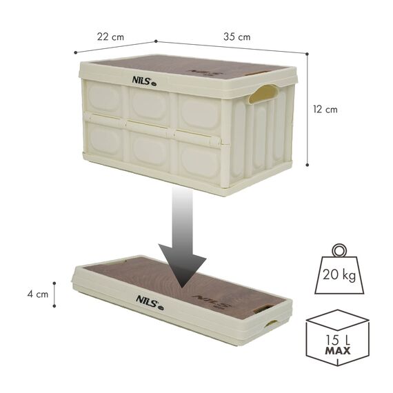 Představovaná turistická úložná skříňka je produktem polské značky NILS CAMP, specializující se na výrobu turistického vybavení. Tento model v bílém provedení nabízí objem 15 litrů, což umožňuje ukládání nezbytného vybavení během výletů do přírody.