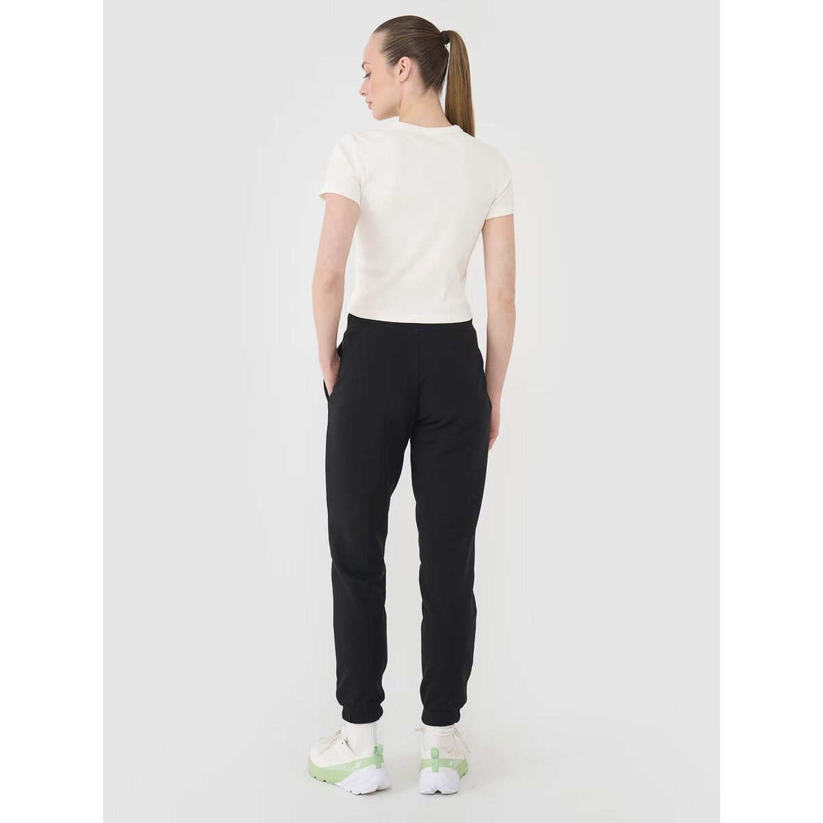 Úzké nohavice zakončené elastickými manžetami zaručují pohodlné přizpůsobení a zvýrazňují siluetu. Volnější střih v oblasti boků poskytuje plnou svobodu pohybu a komfort po celý den.
