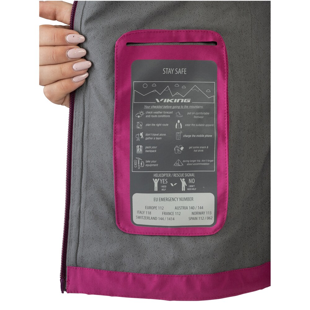 Trek Pro 2.0 Lady značky Viking je větruodolná, voděodolná bunda, která poskytuje neuvěřitelné pohodlí a komfort. Bunda je vybavena membránou Aqua Thermo TEX +, která zaručuje vynikající prodyšnost a voděodolnost, a její lehká a elastická konstrukce zajišťuje pohodlné nošení. Dále má ventilační systém pod pažemi, voděodolný zip a kapuci, stejně jako manžety nastavitelnými na suchý zip s místem na palec. Je to ideální volba pro každou aktivní ženu.
